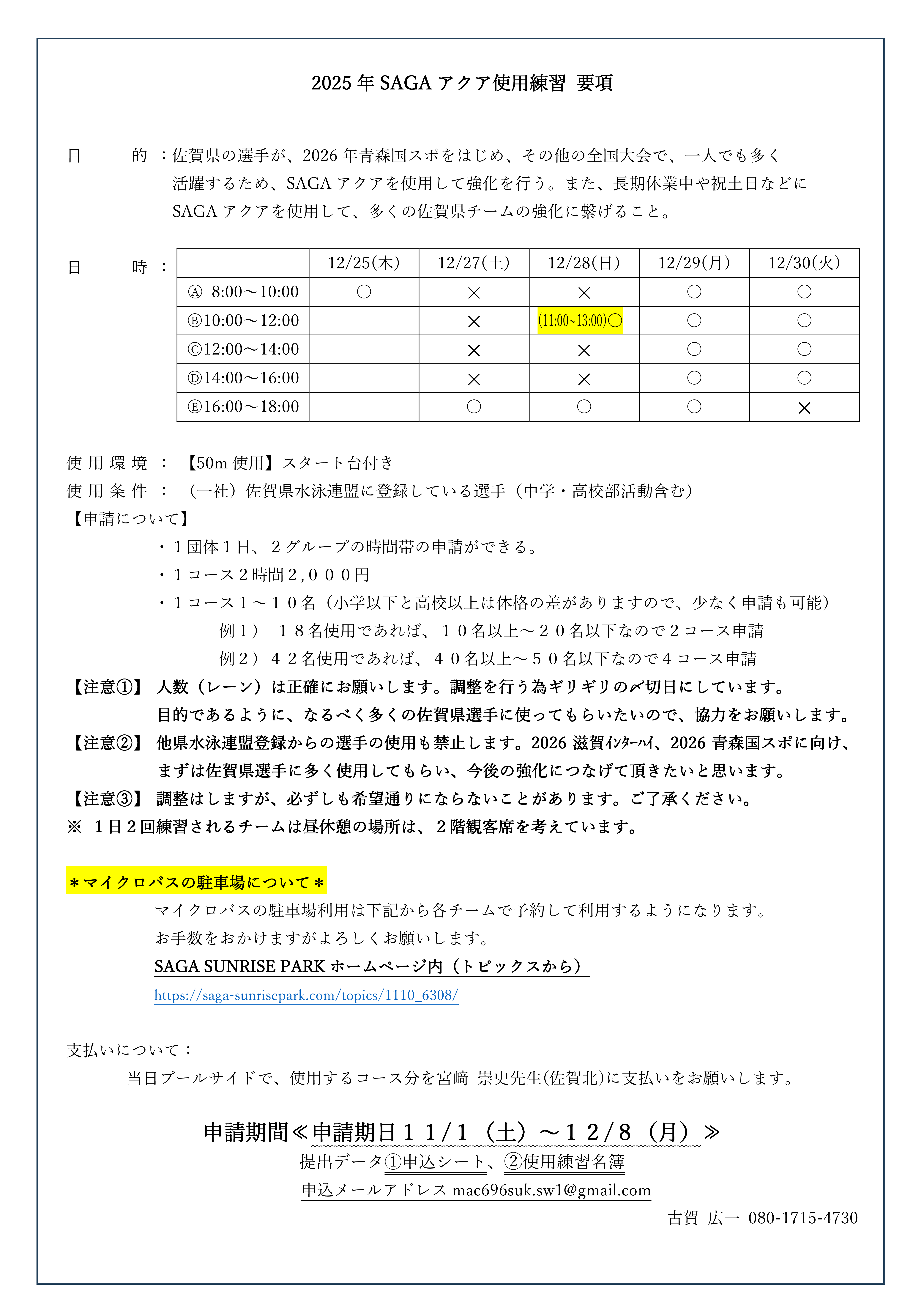 • 2025年11月13日競泳委員会2026青森 国民スポーツ大会 水泳競技(競泳) 候補選手練習会 兼 佐賀県競泳競技強化練習会(2次要項)
