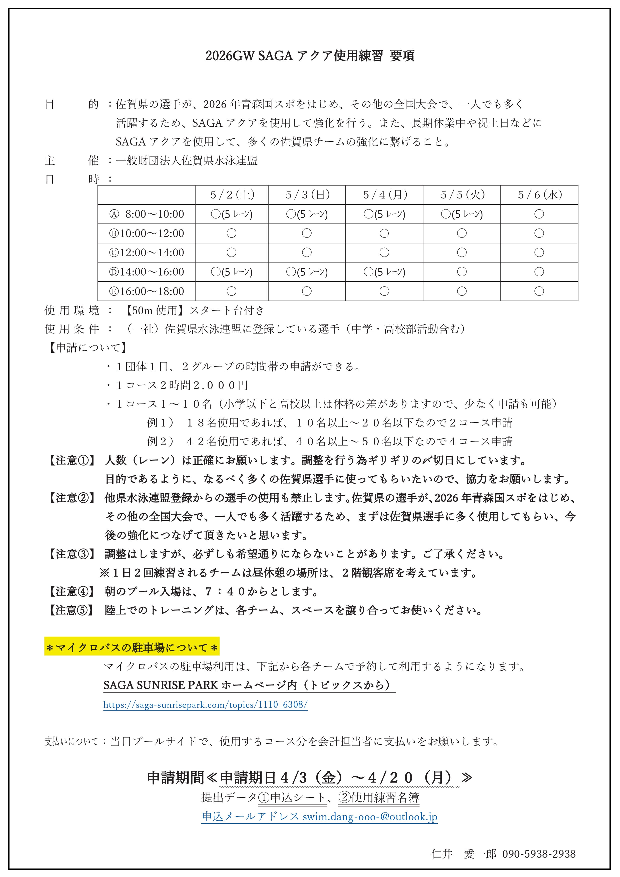 • 2026年4月3日競泳委員会お知らせ2026GW SAGAアクア使用練習について